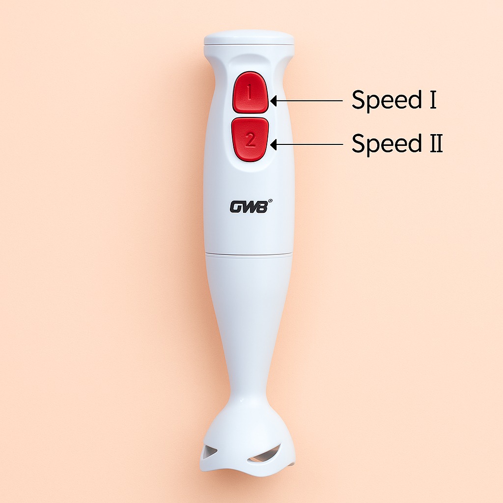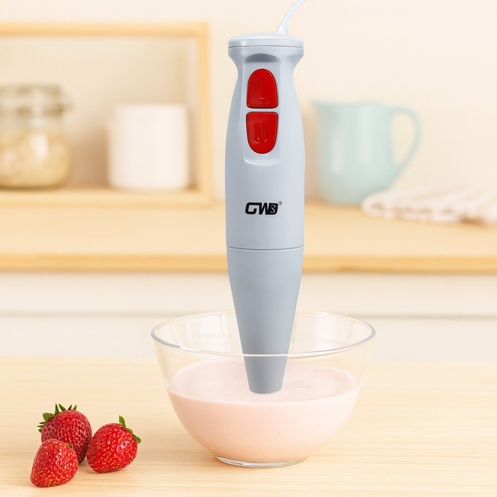 Licuadora de inmersión, también conocida como batidora de mano o hand blender, de la marca GWB. Este tipo de electrodoméstico es versátil para la cocina.